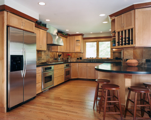 Compare the appearances of oak, maple, and cherry cabinets!